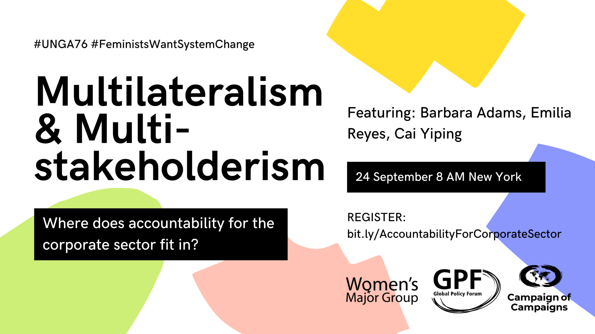 Join this UNGA76 side event exploring corporate influence across the United Nations System, and identifying ways in which civil society and all actors can resist corporate influence with a view to build a more accountable and equitable system that operates in the interests of people and planet, rather than profit.