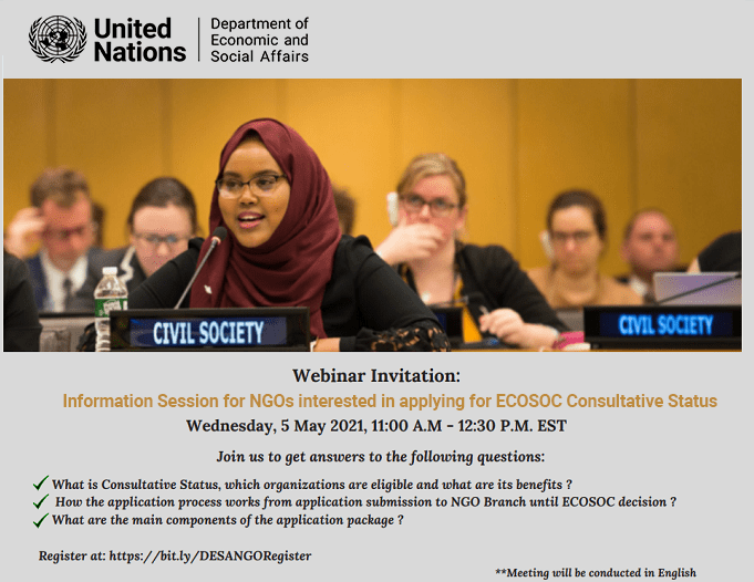Dear NGO Representatives, The Department of Economic and Social Affairs (DESA) NGO Branch will be conducting a Webinar on “Applying...